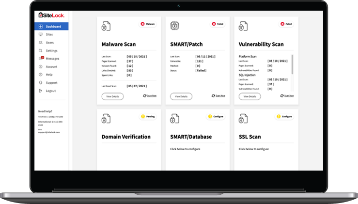 • Immediate alerting and updates: Always be informed about the security of your site with automated alert emails and live results from your SiteLock Dashboard.
